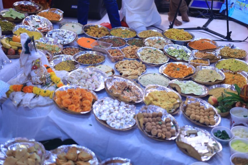 सुबह से ही यहां पर समिति के कार्यकर्ताओं ने गिरिराज जी के समक्ष छप्पन प्रकार से अधिक व्यंजनों का भोग लगाया गया था। इस भोग में पोषक तत्वों वाली खाद्य सामग्री शामिल की गई। इनमें करीब एक दर्जन से अधिक प्रकार की विभिन्न प्रकार की मिठाईयों के अलावा इम्युनिटी को मजबूत करने वाली औषधीय सामग्री जैसे तुलसी, नारियल, अदरक, दही, पनीर, आंवला, पालक, मैथी, ड्राय फ्रूट, कद्दू की सब्जी आदि के पकवान शामिल थे। वहीं श्रद्धालुओं के लिए विशेष प्रकार की शुगर फ्री मिठाई भी बनाई गई थी।